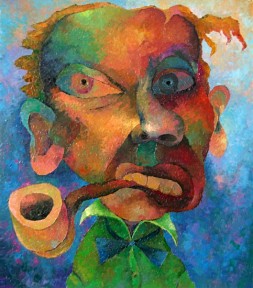 Der erste Eindruck ist der einer überwältigenden Farbkraft, Farbe als ein dynamisches Ereignis, das nicht mehr an reale Gegenstände oder Inhalte gebunden ist. Werfen wir einen Blick auf das Bild von der Einladungskarte, das hier gleich neben der Eingangstür hängt: Wir erkennen eindeutig einen Kopf, der möglicherweise von einer Maske verdeckt ist, die der Künstler sich vor das Gesicht hält. Die Hand in der Mitte des oberen Bildrandes lässt diese Deutung durchaus zu. Mit der Wiedergabe der sichtbaren Wirklichkeit hat dieses Bild allerdings nichts mehr zu tun, Formen und Farben sind frei geworden und unterliegen nur einer neuen, vom Künstler gesteuerten Gesetzmäßigkeit. So ist z.B. der Farbwechsel von Blau-Grün Tönen des Auges im rechten Bildteil zu Rot-Orange im Auge der linken Seite nicht das Ergebnis einer Darstellung von Schattenpartien, sondern die Entscheidung des Künstlers für einen Komplementärkontrast. Diese Entscheidung lässt sich in den meisten der hier gezeigten Bildern nachweisen, wobei der Kontrast nie zu dominant oder grell ausfällt. Wenn wir genau hinschauen, dann sehen wir, dass die Farbe immer wieder innerhalb der einzelnen Farbfelder moduliert und differenziert wird. Farbe wird frei, ist nicht mehr an vorgegebene Form gebunden und kann somit zum farbigen Licht werden, das die stoffliche und räumliche Grundlage des Bildes mit einer faszinierenden Strahlkraft förmlich überflutet. „Farben sind Taten und Leiden des Lichtes“, hat Goethe gesagt. Diese besondere Steigerung der reinen Lichtwirkung der Farben entsteht, wenn hell leuchtende auf hellen und dunkel leuchtende auf dunkleren Farben stehen, also nicht hell in dunkel und umgekehrt. Die Kontraststellung in der farbigen Welt stabilisiert den Bildraum und in den fließenden Übergängen der Farbmodulation entsteht auch in der Farbe die Bewegung. Gennady Karabinskiy beherrscht als Maler den Umgang mit Farben, aber seine Bilder zeigen uns weit mehr: es öffnet sich ein Kaleidoskop von Bildern und kleinen Geschichten im Bild. Dazu gehören Menschen, Köpfe, Häuser, Pflanzen, Bäume Tiere, Vögel und auf einem Bild im hinteren Raum auch ein ruhender Hund. Der Hund gehört zu den Tieren, die nach jüdischem Verständnis unrein, also nicht koscher sind, weil sie weder Wiederkäuer sind, noch gespaltene Hufe haben. Dies zeigen deutlich, wie ein Warnsignal, seine Pfoten. Der rote Hund ist nur scheinbar harmlos, er liegt zusammengerollt auf einer Decke, seine Augen beobachten den Betrachter, seine Rute ähnelt eher einer Schlange. Wir können nicht eindeutig sagen, was es mit diesem Tier auf sich hat, in den Bildern von Gennady Karabinskiy ruht auch immer ein Element des Geheimnisvollen , etwas , was nicht gleich zu entschlüsseln ist oder sich unserer Deutung vielleicht auch ganz entzieht. Manchmal erhalten wir Hinweise durch Bildelemente, die eine symbolische Bedeutung haben. Die Flöte oder Trompete, die an eine Abwandlung des Schofarhornes erinnert, eines Widderhornes , das von dem Schofarbläser in einer religiösen Zeremonie nach festen Regeln geblasen wird. Oder der Vogel , der auf der Schulter eines Menschen sitzt. Ist es ein Symbol für die Seele, die davonfliegen kann oder vielleicht eine Anspielung auf Namen jüdischer Frauen, wie etwa „Vögele“, „Taube“ oder „Täubchen“? Zweifelsohne hat die Bilderwelt Karabinskiys Berührungspunkte mit der jüdischen Kunst. Ähnlich wie Marc Chagall benutzt er jüdische Elemente in seiner Kunst, schildert dabei aber keineswegs jüdische Lebensweisen. Die Szenerien seiner Bilder sind frei arrangiert, sie bringen häufig divergente Elemente zueinander, Figuren, Landschaft, Häuser, Blumen und symbolbesetzte Gegenstände verschmelzen miteinander und halten das Bildereignis in einem Schwebezustand zwischen Realität und Traumwelt. Dabei geht er sehr frei mit den gewohnten Größenverhältnissen, Proportionen und Perspektiven um und erschafft eine neue Wirklichkeit, eine Bildwirklichkeit, die ihren Ursprung in der inneren, geistigen Welt des Künstlers hat. Man kann sagen, dass seine Kunst eine Schnittstelle von Abstraktion und Konkretion darstellt, und dabei ist Karabinskiys Welt reich an Symbolen, auch Gefühlen wie Traurigkeit, Furcht oder Freude, manchmal auch Ironie. Entdecken Sie, meine Damen und Herren, wie die Dinge ihre Eindeutigkeit verlieren, wie sie sich verwandeln: die Trompete wird zum Stängel einer Pflanze oder umgekehrt und der Granatapfel im Stillleben der Einladungskarte verweist mit seiner Krone am Stiel der Frucht auf die Krone der Torarolle. Die Kunst Gennady Karabinskiys hat, wie sie im Kabinett sehen können, auch im kleinen Format und in der Zeichnung ihre Größe. Meine sehr verehrten Damen und Herren, ich komme zum Schluss: vollenden Sie nun als Betrachter, was die Künstler angelegt haben, denn erst im Zusammenspiel von Werk- Künstler und Betrachter schließt sich der Kreis. 15.Mai 2011, Galerie im Heuerhaus, Dötlingen ©claus diering 2011 |